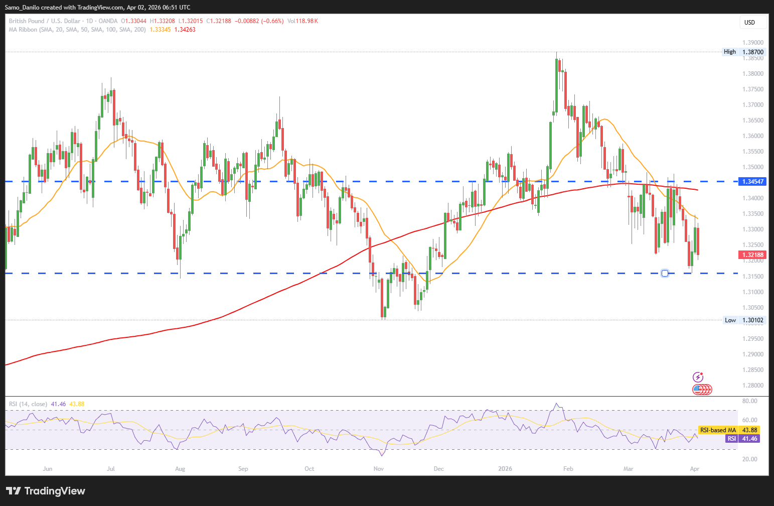 - GBP/USD Price: The GBP/USD retreats from the 1.3345 area and trades near 1.3210 during the European session. The move reflects renewed selling pressure and a stronger US Dollar tone.