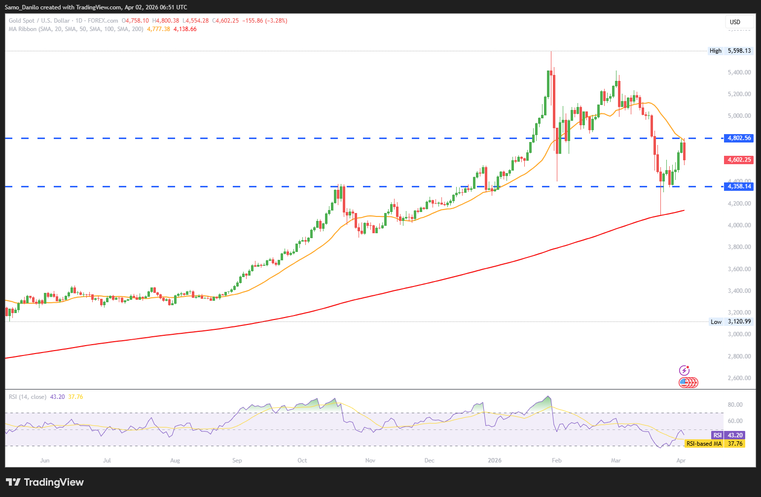 - XAU/USD Price: The XAU/USD turned lower after hitting the $4,800 level, snapping a four-day winning streak. The pullback is mainly driven by renewed strength in the US Dollar.