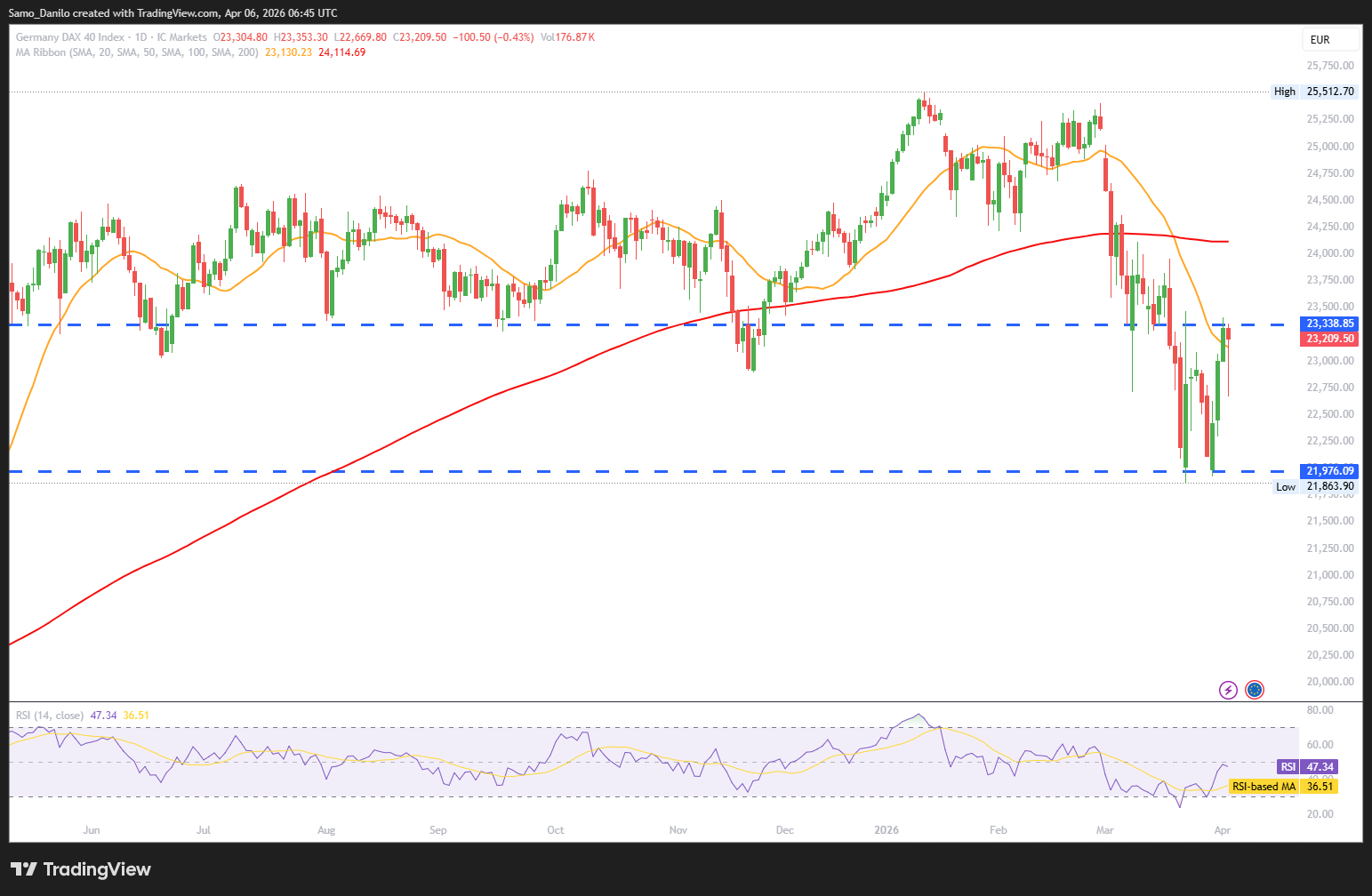 - DAX 40 Price: The DAX is trading lower near 23,200 after three consecutive days of gains. The shift highlights increasing volatility as macroeconomic concerns begin to outweigh recent optimism.
