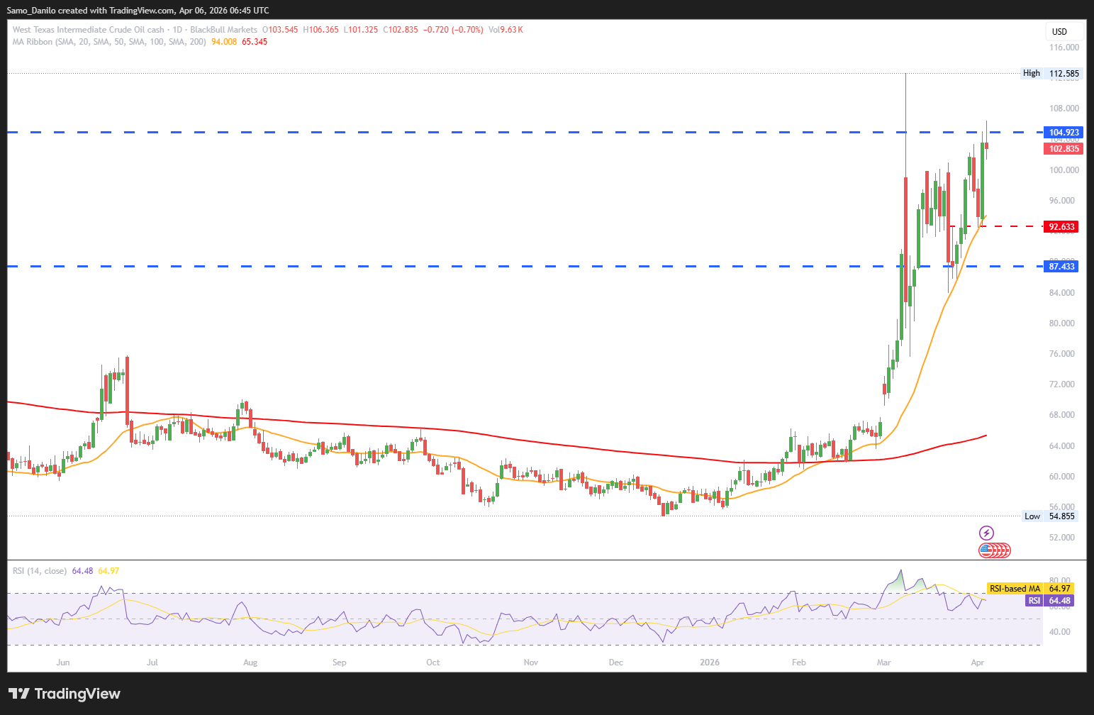- Crude Oil Price: The WTI crude oil is trading around $103.00, maintaining levels above the key psychological $100 mark. Prices remain supported by ongoing geopolitical uncertainty despite signs of supply adjustments.
