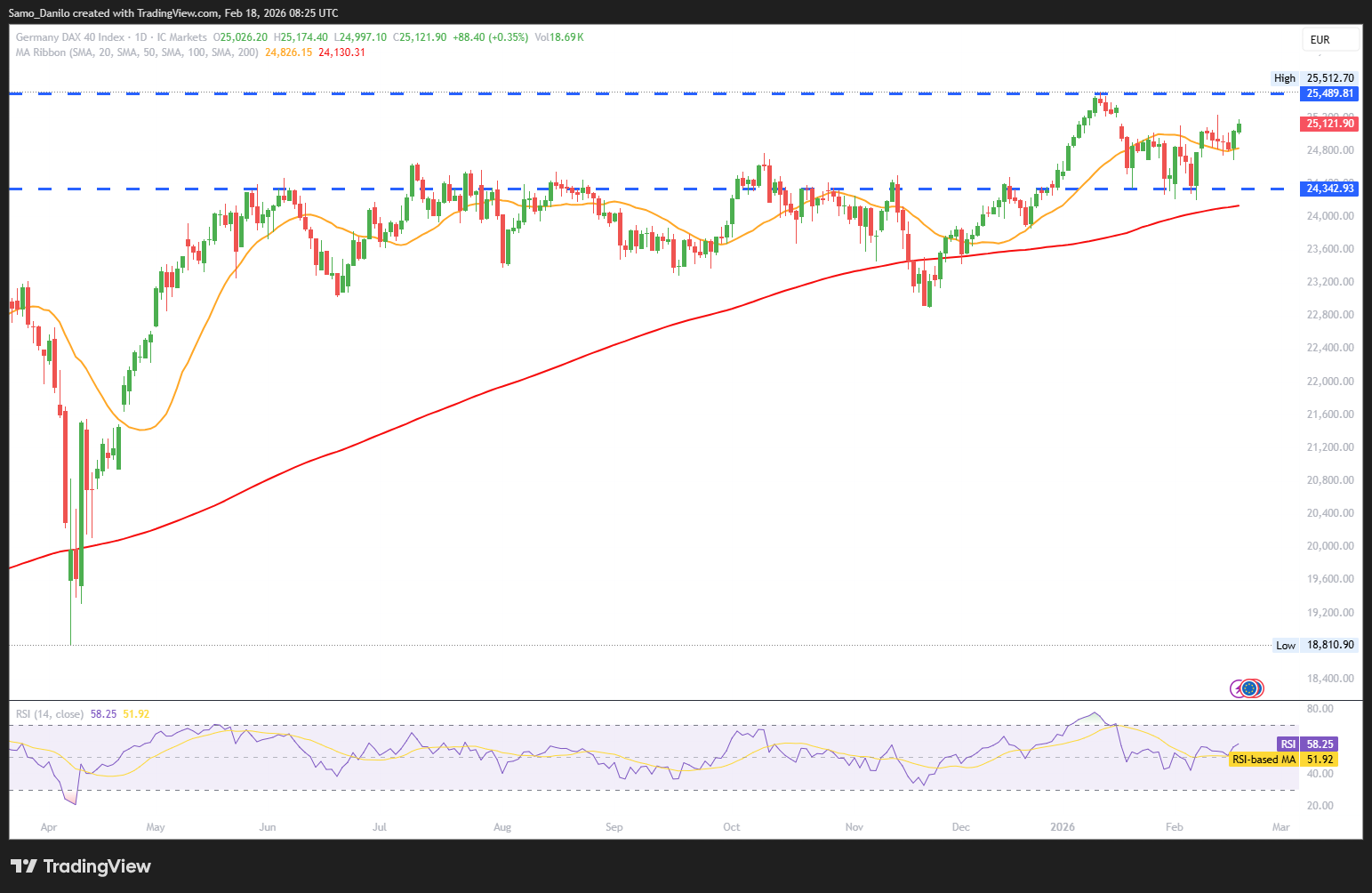 - DAX Price: Germany’s DAX gained around 0.45%, trading near 25,135 points on Wednesday morning, extending its rebound after recent choppy sessions.