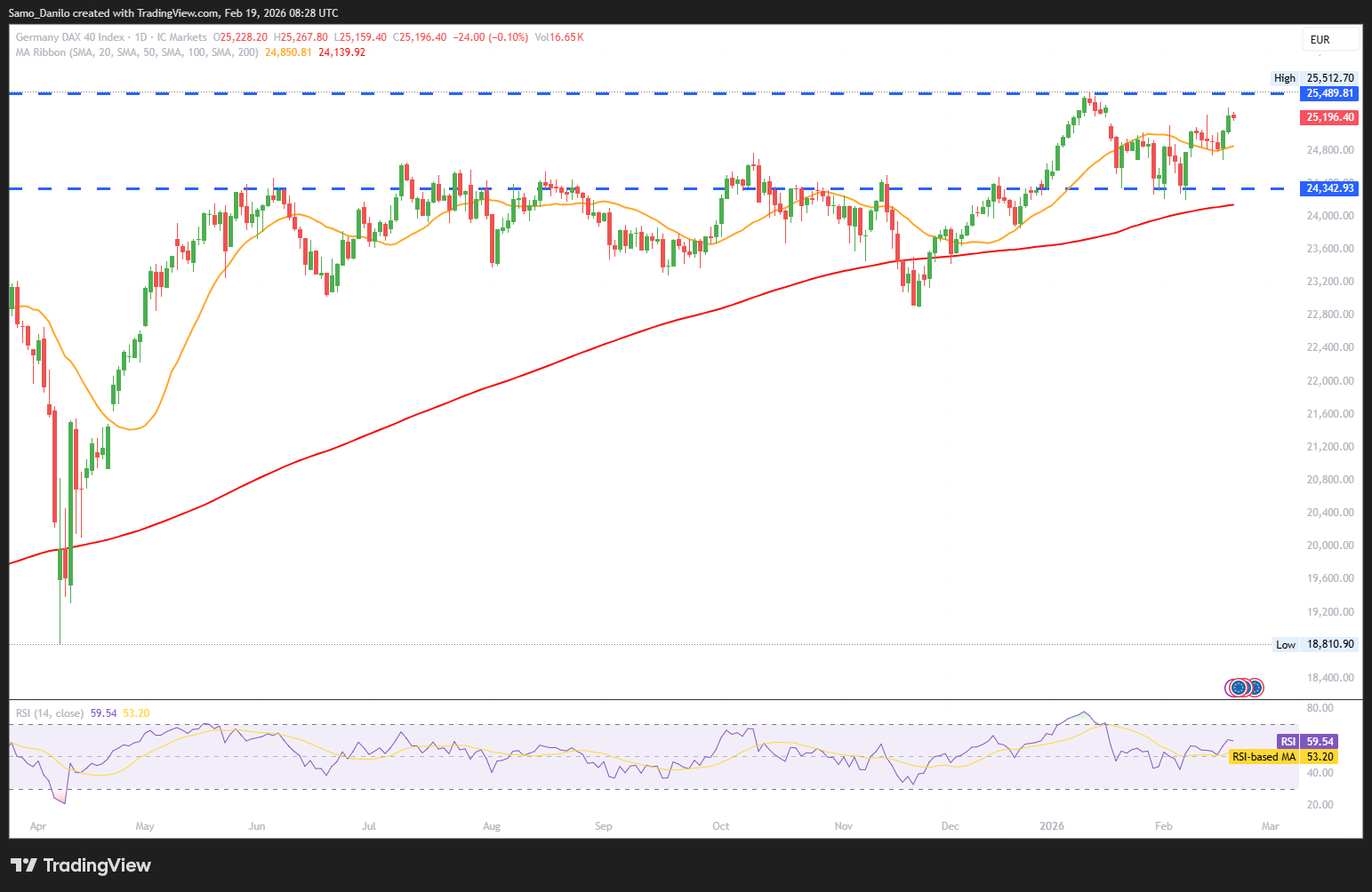 Closing statement: The DAX remains range-bound near record levels, supported by solid corporate earnings and improving domestic sentiment, but capped by sticky global rate expectations. Near-term direction is likely to depend on further macro data and confirmation that Germany’s cyclical recovery continues to gain traction.