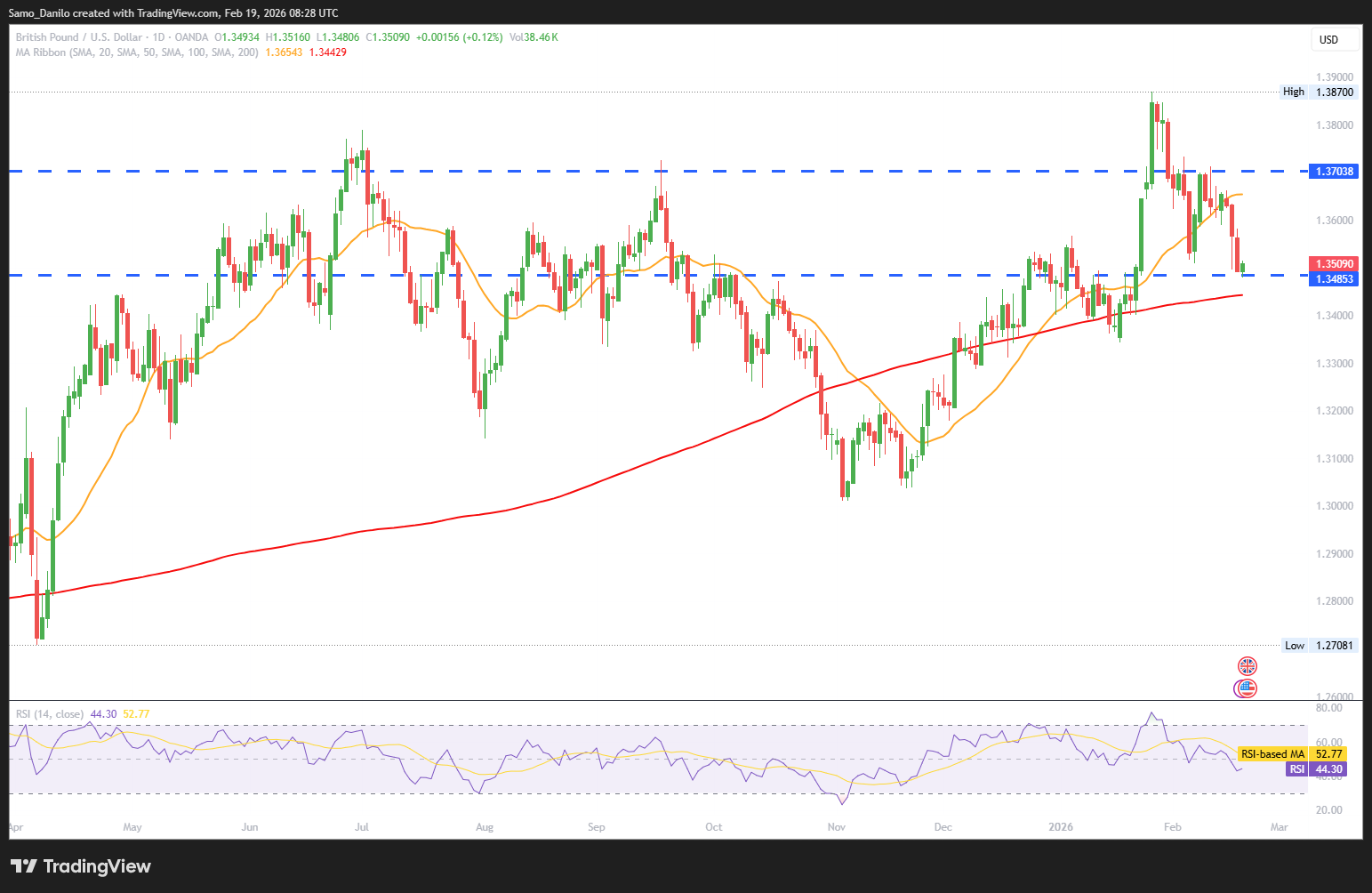 - Technical signals: Cable has slipped below its 50-day moving average (50-DMA) and under the 38.2% Fibonacci retracement of the November–January rally. This breakdown suggests the pair has entered a bearish consolidation phase, leaving room for further downside.