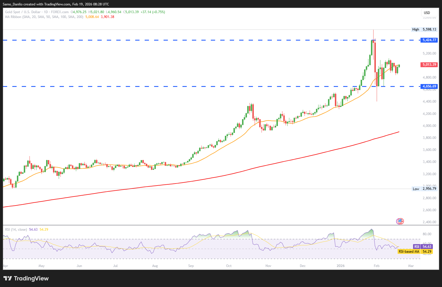 Closing statement: Gold remains stuck in consolidation above $5,000, supported by medium-term rate cut expectations and geopolitical uncertainty, but near-term upside is capped by hawkish Fed rhetoric and firm risk appetite. A clear break will likely require either softer US inflation data or a renewed spike in global risk aversion.