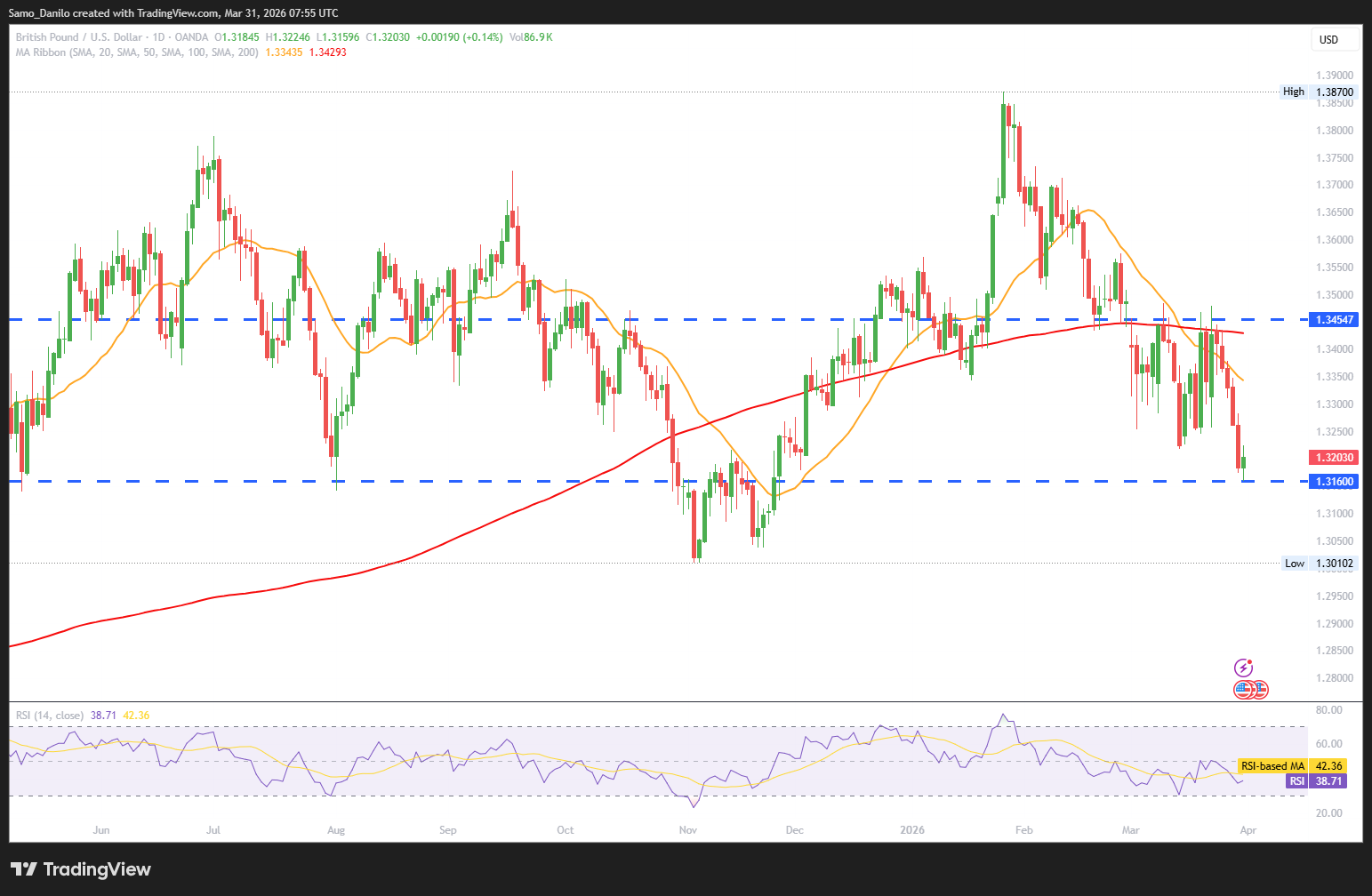 - GBP/USD Price: The GBP/USD is stabilizing just below the 1.3200 level after recent gains. Despite the rebound, the pair is struggling to build stronger upside momentum, indicating cautious market sentiment.